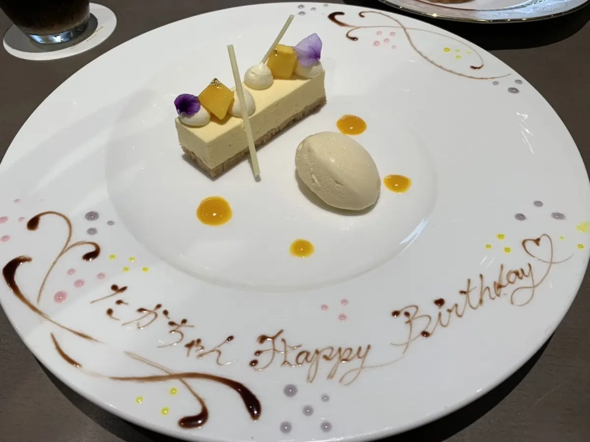 美味しかったねー、なんて話をして席に着いたら可愛いデザートが出てきました。