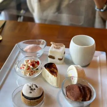 ここのデザートは、なんと何種類でも選んで良いんですよ!選びきれなーい!って思っていたら、お店の方が「わりと女性の方も全種類選ばれますよ」って仰られたので、それならば!ということで、私達も全種類お願いしちゃいました。綺麗にワンプレートにしてもらって、2人でゆっくりいただきましたよ。