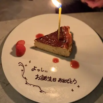 トイレに席を立った時にお願いしていたとおり、お食事が終わったタイミングで、スタッフの方がお誕生日メッセプレートを運んで来て来れました。