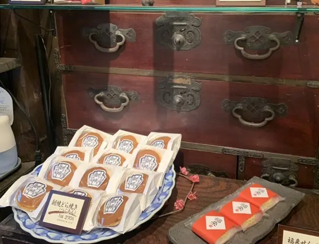 和菓子がずらりと並ぶ、町屋風のお店。