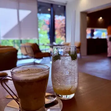 木のぬくもりを感じる落ち着いた店内に、窓からは森の緑が広がっていて、テラス席もありました。