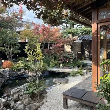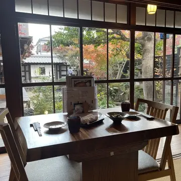 店内から見る中庭の美しさ。
