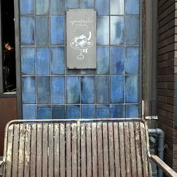 少し路地裏に入りますが、深く落ち着きのある青色の外観。