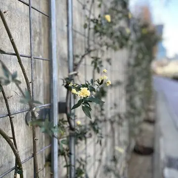 この日は建物に這わされていた小さな黄色のバラが可憐に咲いていました。