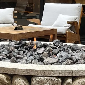 夕方にはカフェの中の石に火が灯り