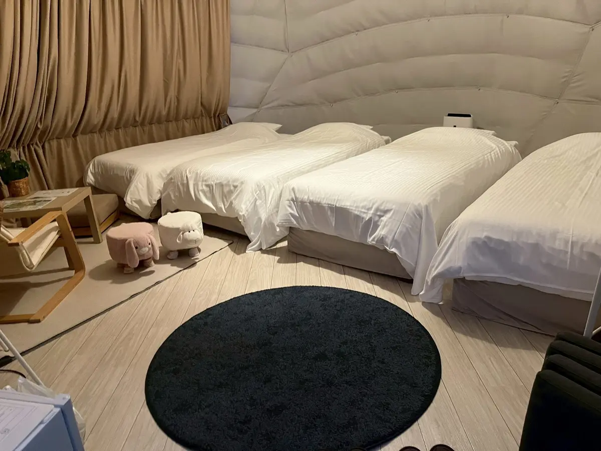 かわいいテントの中は暖かかった🫶
