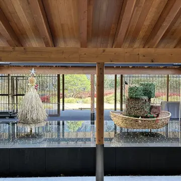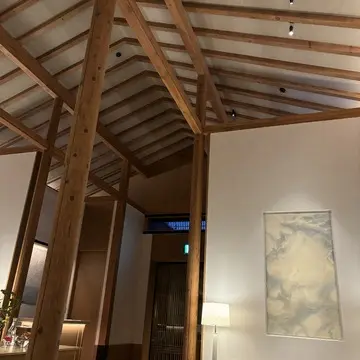 ロゴのデザインとリンクしている北山杉がエントランスに。