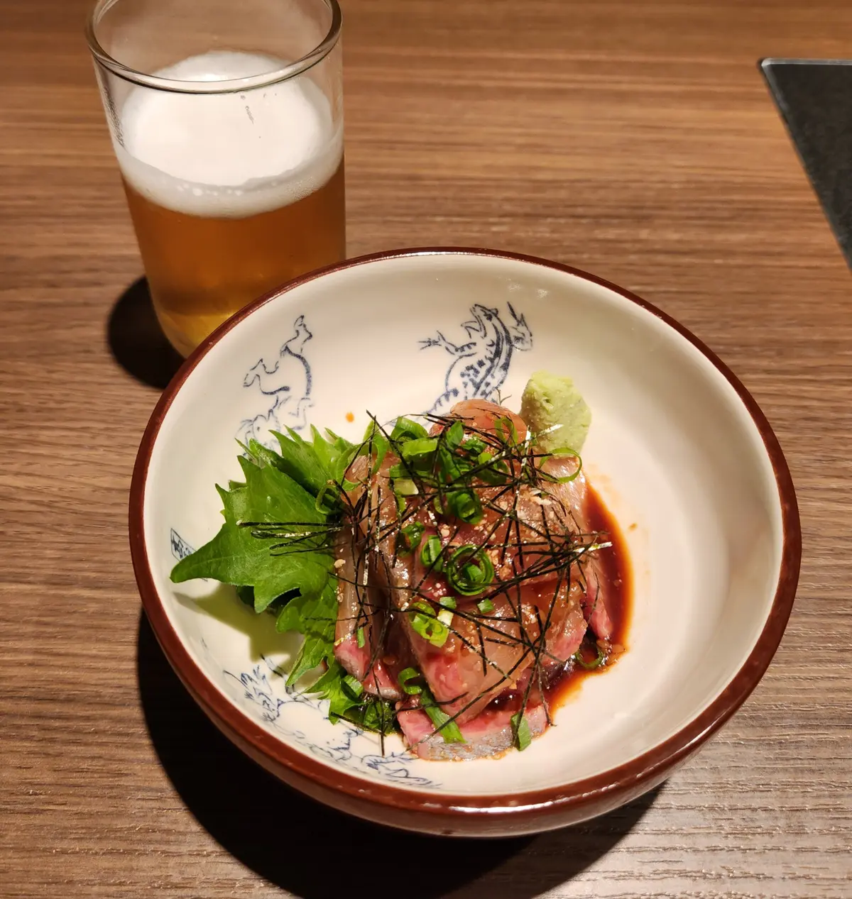 ・ごまカンパチ。生のかんぱちを醤油ベースのタレで和え、ゴマ風味を効かせた一品。美味しい♡