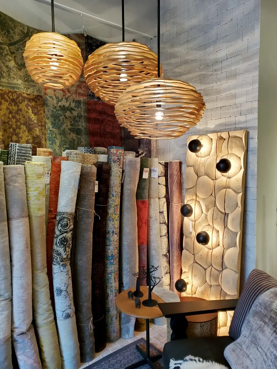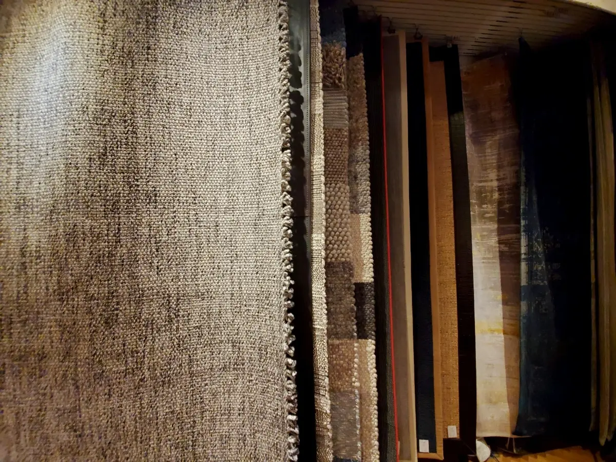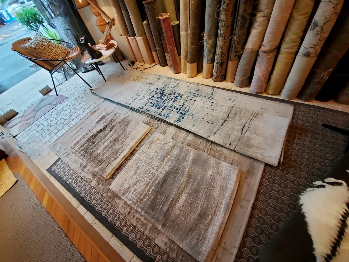ヨーロッパ製のラグが所狭しと並んでいます。