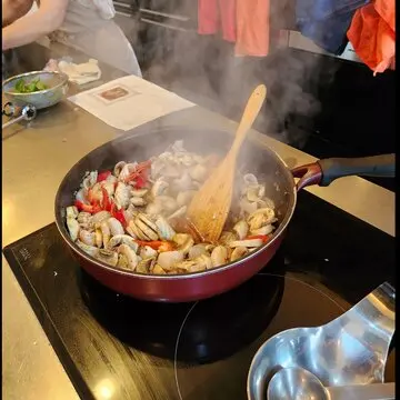 シーフードがすぐ固くなってしまうので、とにかく素早くするのがポイント。