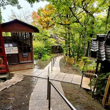 立寄り客専用駐車場から大露天風呂まで5分程歩きますが、その道中も風情たっぷりで温泉への期待が高まります!