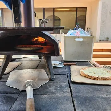 ビールのお供に、本格的な釜で焼き上げられたピザが次々に運ばれてきました。美味しい♡