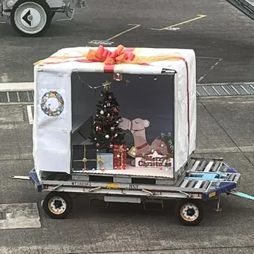 搭乗待ちの間、ぼんやりとこれから乗る飛行機を見ていたら、クリスマス仕様に。