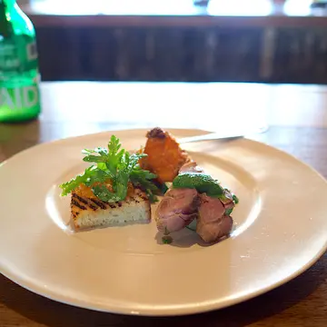 クロティーニは野菜や果物、フォカッチャに鴨ローストと野菜ペーストが塗られたワンプレート。