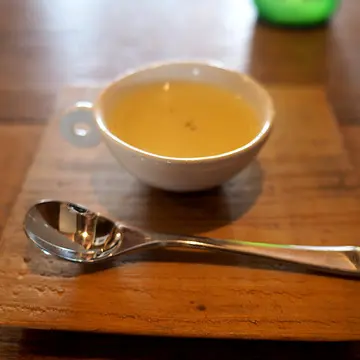 飲み物は、温かい焙じ茶×レモングラスで。