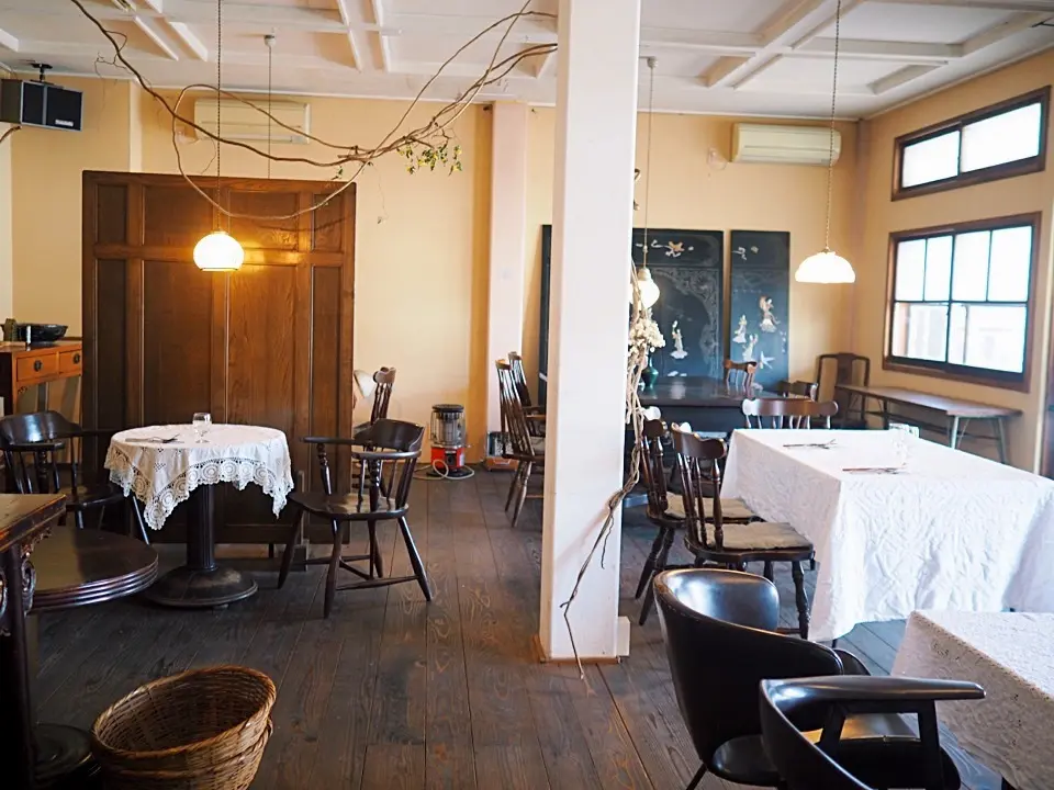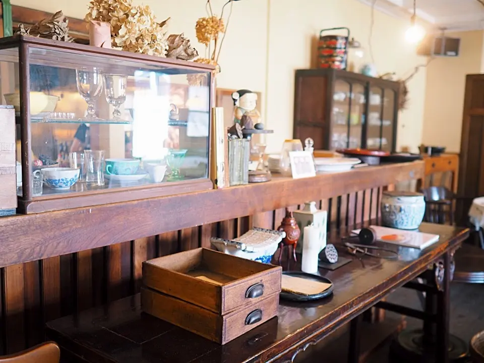 お店の中はナチュラルテイストな中にも骨董アンティーク、中国雑貨、薪ストーブが配置されていてとても居心地がいいです。