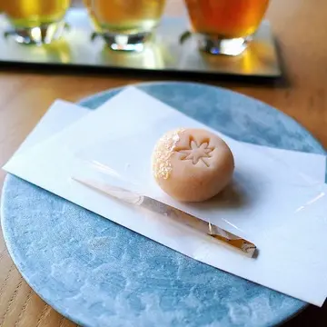 私は「3種飲み比べセット (和菓子付)」をいただいてみました。季節の和菓子とのセットです。