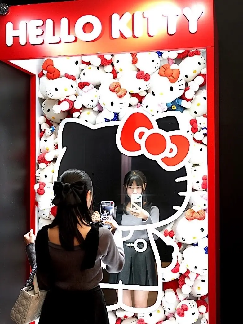 またコーナーの最後には、大きなキティちゃん型の鏡を使ったフォトスポットもあり、記念写真も楽しめます。