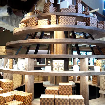 メインショップは、バームクーヘン工房や和菓子の木型の展示などもあり、広々と開放感あるスペースもまたオシャレ。