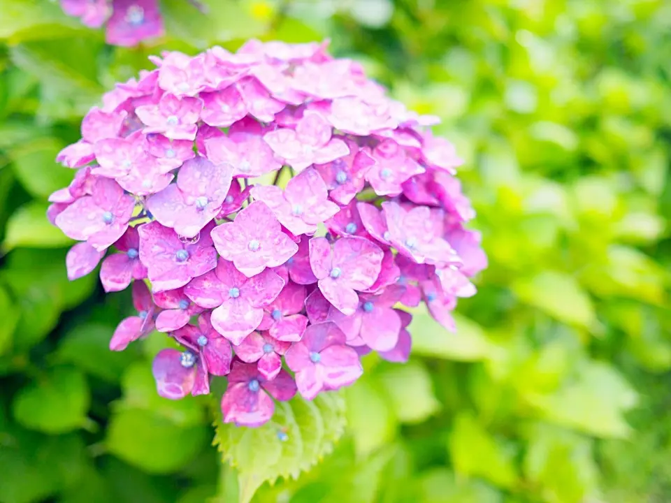雨上がりだったから、紫陽花が元気で、雨の雫が光っていてとても綺麗でした。