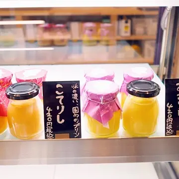 ポップな瓶のプリンがずらりと並んでいます。