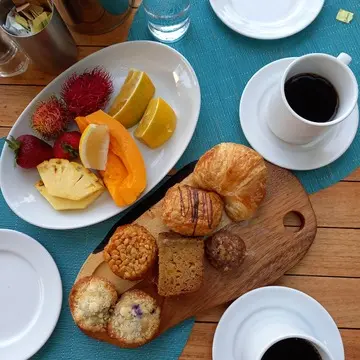 朝食の場所がまた素敵でした♡一年中この気候ならでは、ですね😉