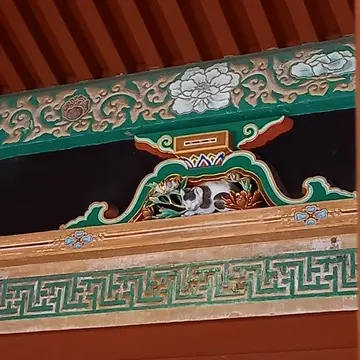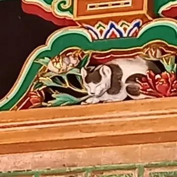 猫が眠っていると、裏側にある彫刻の雀が安心していられることから、