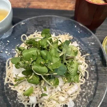 クレソンと鬼おろしのゴマだれぶっかけ蕎麦