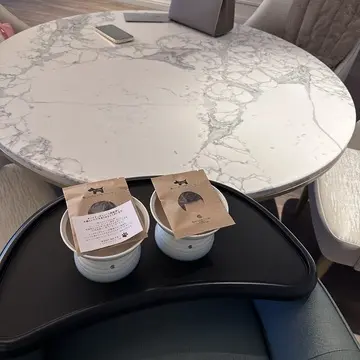 ワンコと一緒の目線でとテーブルに合わせた椅子とおやつ