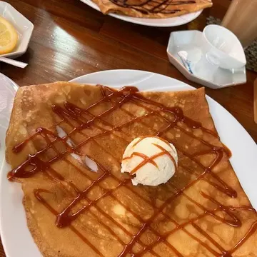 ほろ苦いキャラメルソースがクレープとアイスクリームととてもよく合い、幸せな気分で食べました♪