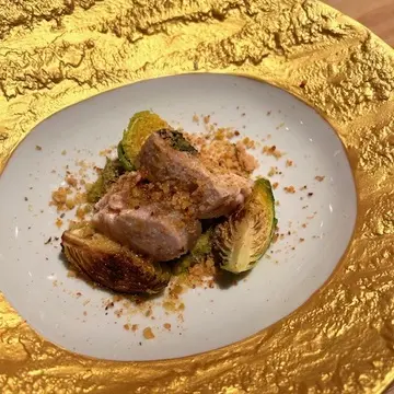 菊芋のフラン。クリーミーな白子が隠れています。