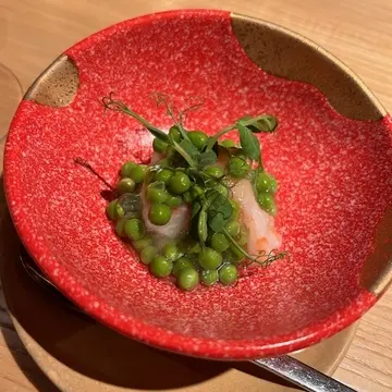 足赤海老プティポア。ジュレでさっぱり。酒粕のアクセントも◎