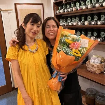 そしてこの日のもう一つの目的は、O-tanが17年間勤めたP社を8月で退職するということで、サプライズで花束を!