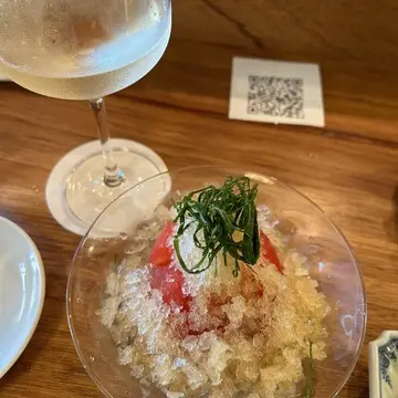 トマトに出汁のシャーベットがかかっていて、暑い日にぴったり!