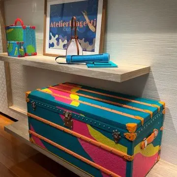 お店の中にトランクが置いてあるのかしら、と想像していたら、何とお店の中の商品はすべて撤去され、トランクと家具だけの空間に。まるで別のショップになっています。