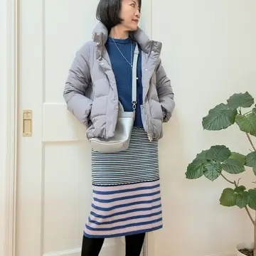 厚手のニットとショートブーツ、ダウンを合わせてカジュアル寄りにしてみました。
