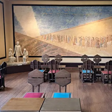 ホールの壁画は生徒たちが描いたもので、修復工事の際に厚く塗られた壁の下から鮮やかな色のまま残っていたのが見つかったそう!!
