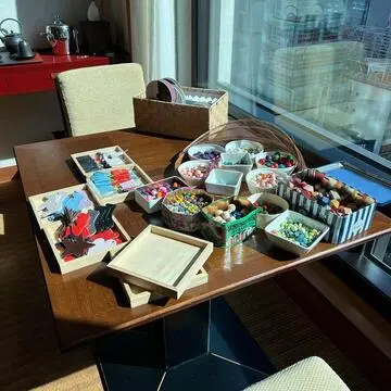 テーブルの上には色とりどりのパーツが。