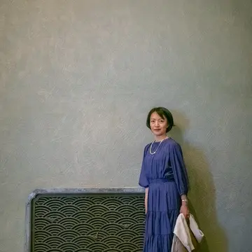 クラシックな建物に合わせて鮮やかなパープルのティアードワンピースにしました。