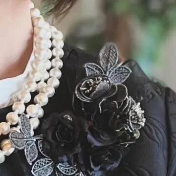 コサージュは、つける位置で印象が変わるのが面白いんです。