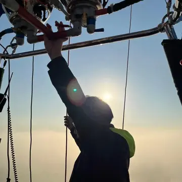 こんにちは ゆかです。熱気球界の第一人者町田会長のお話をきかせていただいて、地上1000メートルを30分のフリーフライト。空の上は穏やかで雲の上に自分たちの乗っている気球の影と虹がみえて。とても素敵な時間でした。