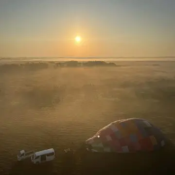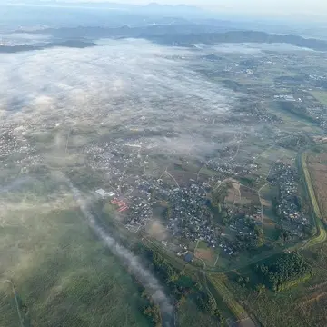 今回の熱気球フライトは地上に朝霧が入っていて素晴らしい景色を