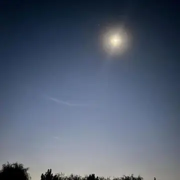 気球の影が雲に映ってその周りに丸く虹が見えています。