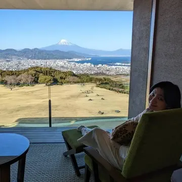 窓からの富士山と駿河湾を眺めながら