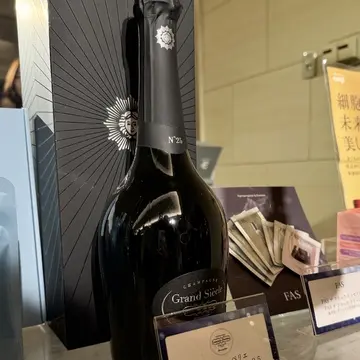 光沢ワイドパンツとシアーブラウスを合わせた、