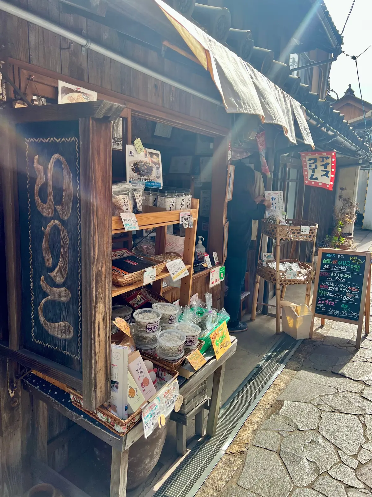 鞆の浦のシンボル常夜灯近くの『けんちゃんのいりこ屋』さんにお土産を買いに。