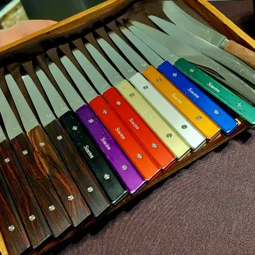 お肉料理の前には「お好きな色のナイフをお選びください」とずらっとナイフが登場。