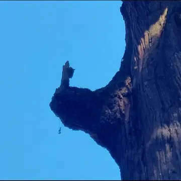 高さ8メートルほどのところに「烏帽子を冠り、手を合わせた神様の姿」が見えました。