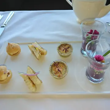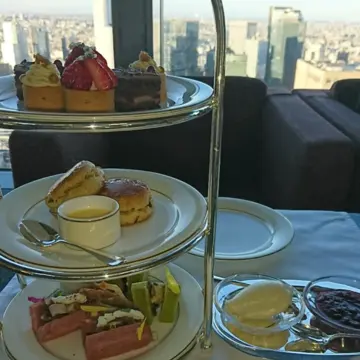 時間とともに表情を変える最高の景色を見ながら、次々と出てくるプティデザートやフィンガーフードと豊富な種類の和洋のお茶とコーヒーでお腹を満たし、至福の時間でした。