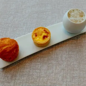 左:グジェール・プティキッシュロレーヌ・とうもろこしの冷製ヴルーテ